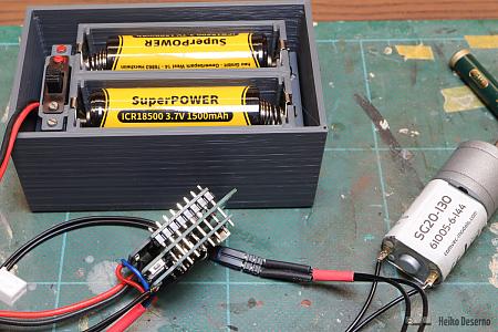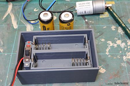 Ein Beispiel zur Anwendung für Mehr-Zellen-Akkus ist der Akkukasten einer Grubenlok B660 im Maßstab 1:13. Als Motor ist in den Bildern ein 6V-Getriebemotor zu sehen, der mit einer Spannung bis 9V betrieben werden kann.
