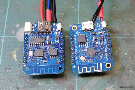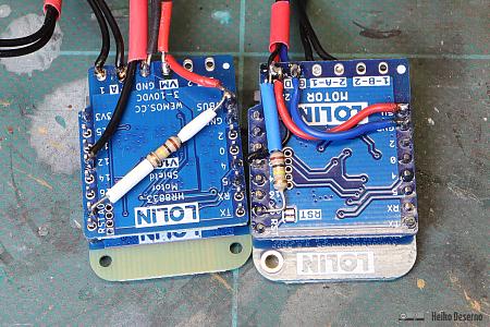 - links: Lolin D1 mini Version 4.0 mit Lolin HR8833-Motorshield