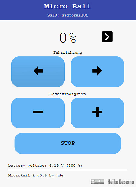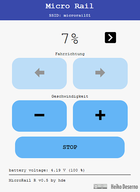 Microrail in dieser ersten Version hat einen einfachen Funktionsumfang. Fahren
