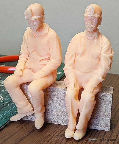 Der Personenwagen befördert 4 Grubenarbeiter. Diese Figuren wurden mit Resin gedruckt. Die Vorlagen stammen von Design Scan Print. Die STL-Dateien können nach dem Kauf heruntergeladen werden. Das Angebot umfasst stehende und sitzende Figuren aller Geschlechter. Die Modelle sind maßstabsneutral. Die Skalierung auf den Modell-Maßstab wird im Slicer vorgenommen.