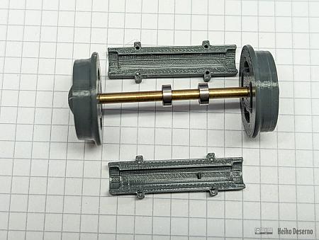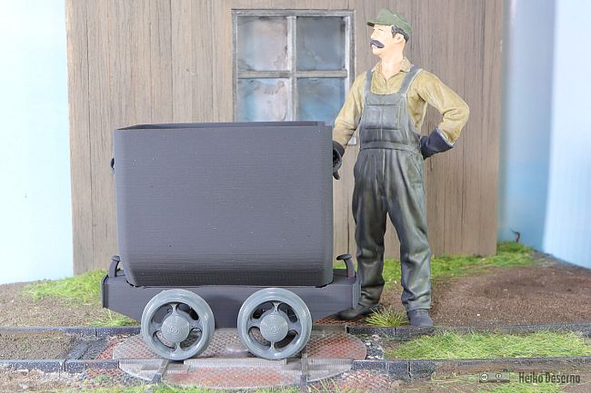 Bei der Verwendung der gedruckten Räder würde ich der Lore zusätzliches Gewicht verpassen. Die Metallradsätze wiegen etwa 50 g mehr. Dieses Gewicht kann als Zusatzgewicht in Form von Blei- oder Stahlkugeln in die Mulde gefüllt und anschließend vergossen werden.