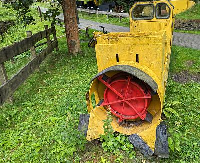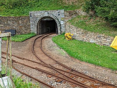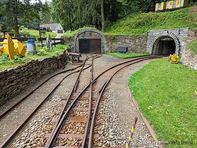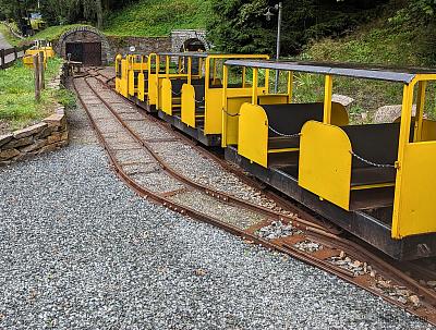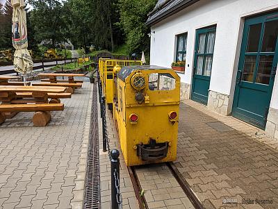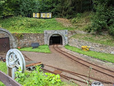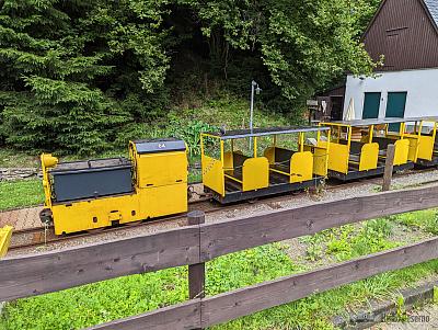 Durch das Mundloch fahren Besucher mit einer Grubenbahn ca. 600 m in den Stollen ein. Der Zug wird an beiden Enden von je einer BBA B360 gezogen. Die Gleisanlagen wurden erst Anfang der 90er Jahre verlegt. Den Stollen selbst habe ich nicht besucht, aber das Außengelände beherbergt eine stattliche Sammlung von Grubenbahn-Fahrzeugen des 20. Jahrhunderts. Viele Sammlungsstücke stammen aus der nahen Zinngrube Ehrenfriedersdorf und anderen Abbaugebieten des Erzgebirges.