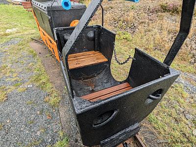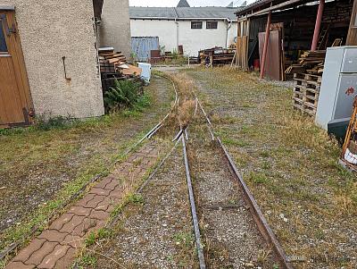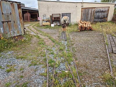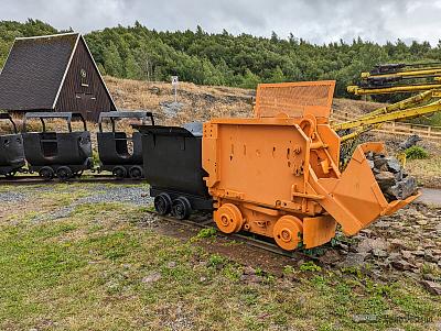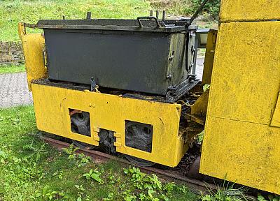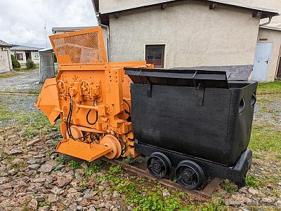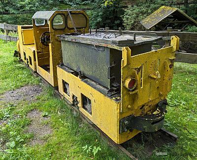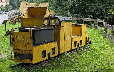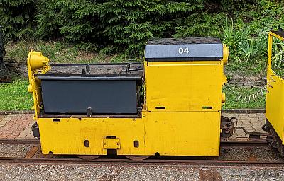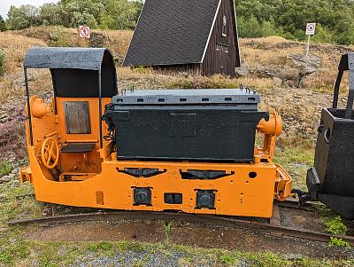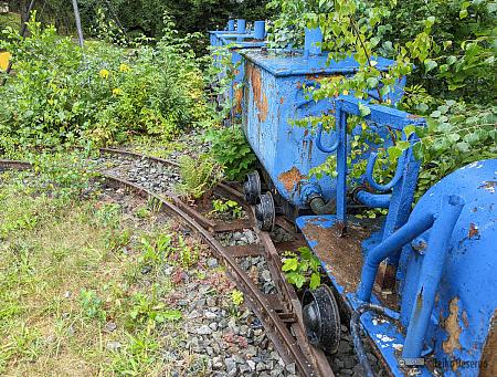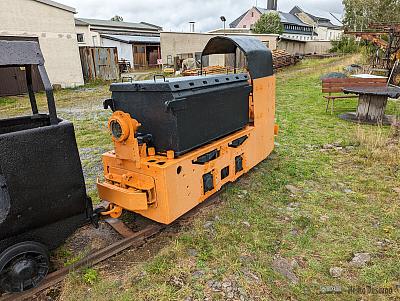 Ein nettes Museumsstück ist die im Außenbereich abgestellte Tandem-Grubenlok des BBA. Beschriftet ist sie als B660, wobei ich eher vom Vorgänger EL-61 ausgehe – sozusagen mit Metallist-Akkutendern. Die Lok hat einen Tender mit Akkukasten sowie einen umgebauten zweiten Tender mit einer Schneefräse ohne Akkukasten. Das Fahrzeug stammt aus der Uranerzgrube Pöhla. Der Umbau des Serienfahrzeugs erfolgte im Betrieb, der Einsatz zur Schneeberäumung der Halden.
