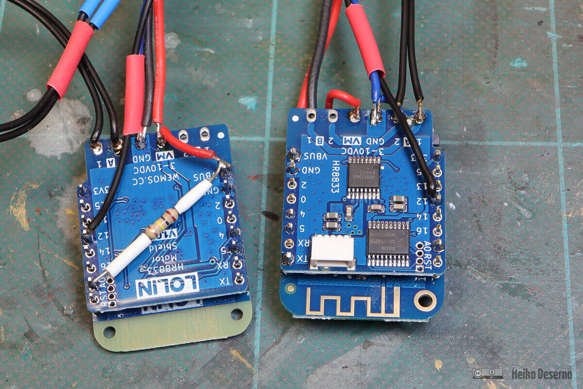 Das Motorshield eignet sich auch für Motoren mit höheren Spannungen. Das Lolin Motorshield HR8833 arbeitet zwischen 3 und 10 V, während das Lolin Motorshield AT8870 Spannungen von 6,5 bis 38 V unterstützt. Lediglich der Motorausgang benötigt die hohe Spannung. Die Steuerung zwischen Microcontroller und Motorshield erfolgt über 3,3 V.