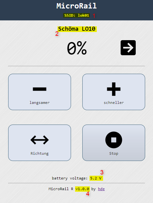 microrailist festgelegt und lässt sich nicht ändern. Änderungen sind nur im Programmcode möglich. - Name: Dieser Name des Fahrzeugs erscheint in der Web-UI.