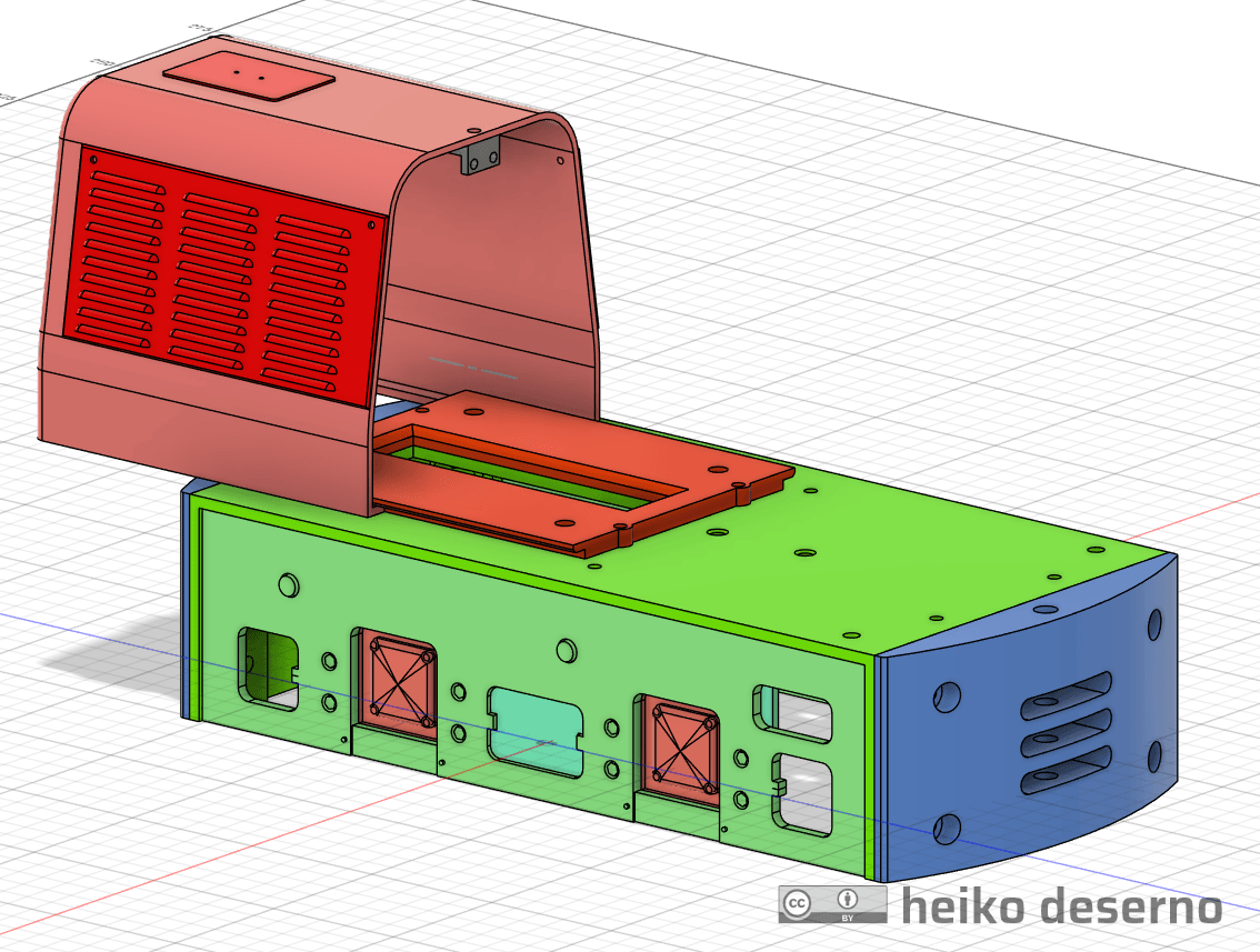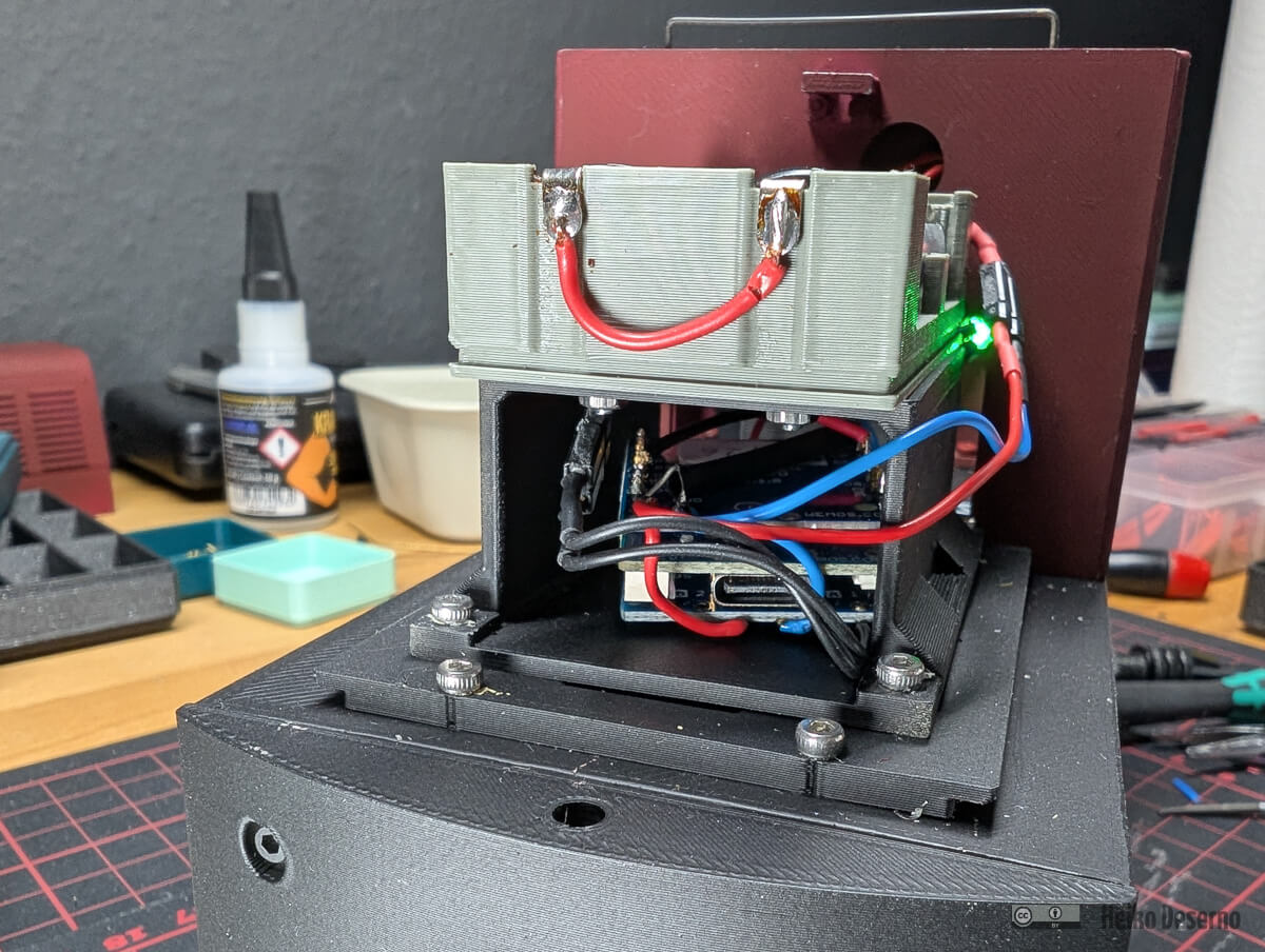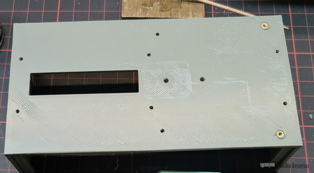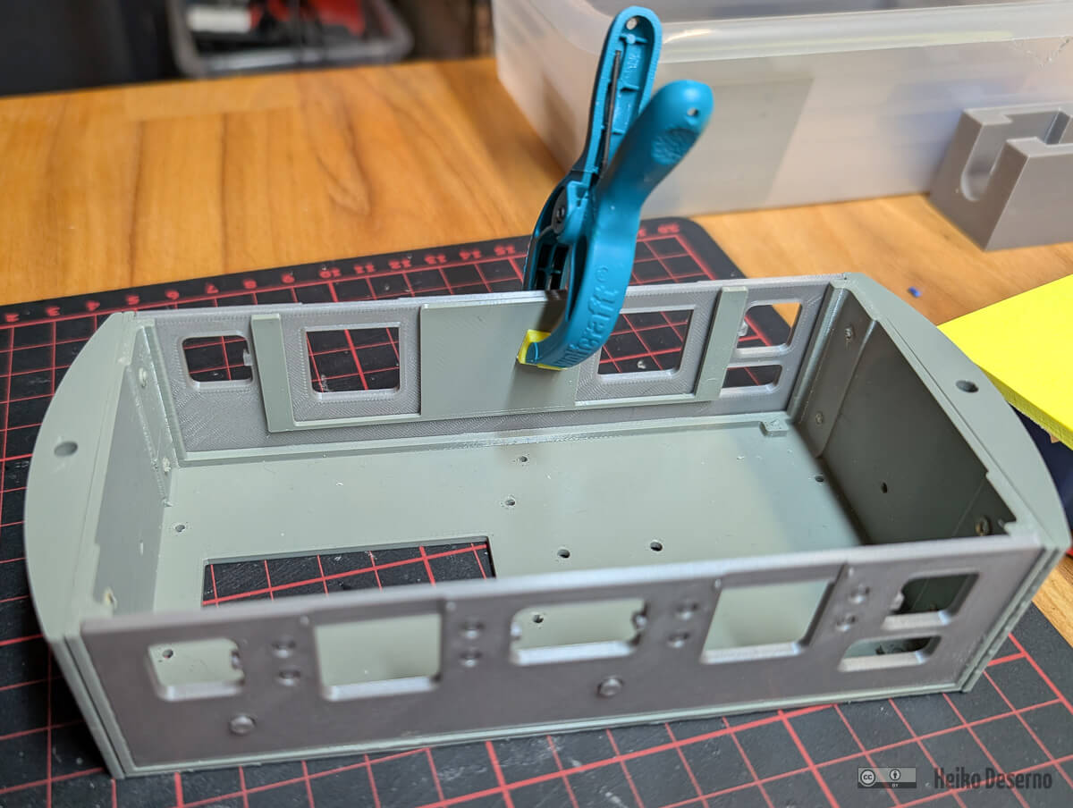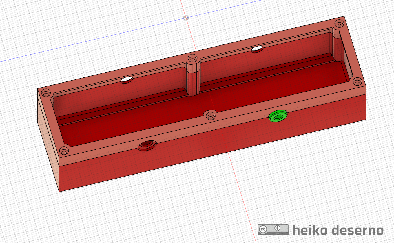 Die Mittelwand besitzt eine Aussparung für einen Miniaturschalter zum Ein- und Ausschalten der Steuerung. Der Empfänger hat eine Status-LED, für die keine Öffnung in der Konstruktion vorgesehen ist. Ich habe in die Mittelwand bei der Endmontage ein 3 mm Loch gebohrt.