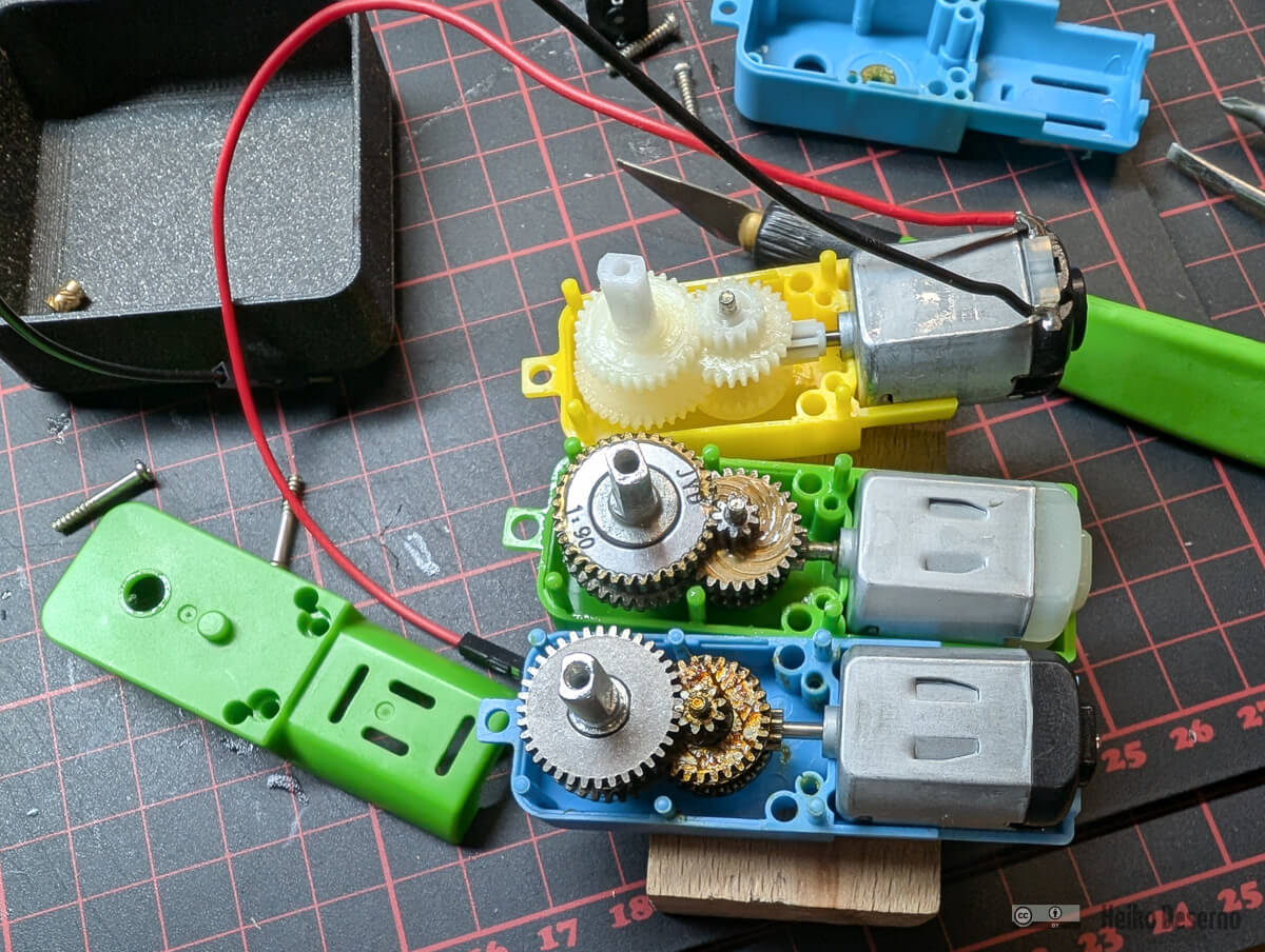 Allerdings haben mir die lose Lagerung der Antriebswelle und die Eigenschaft, dass alle Getriebeteile aus Kunststoff gefertigt sind, nicht gefallen. Somit war es mit der Euphorie erst einmal vorbei. In der Zwischenzeit gibt es neue Erkenntnisse: Diese Getriebemotoren gibt es auch in Metallausführungen.