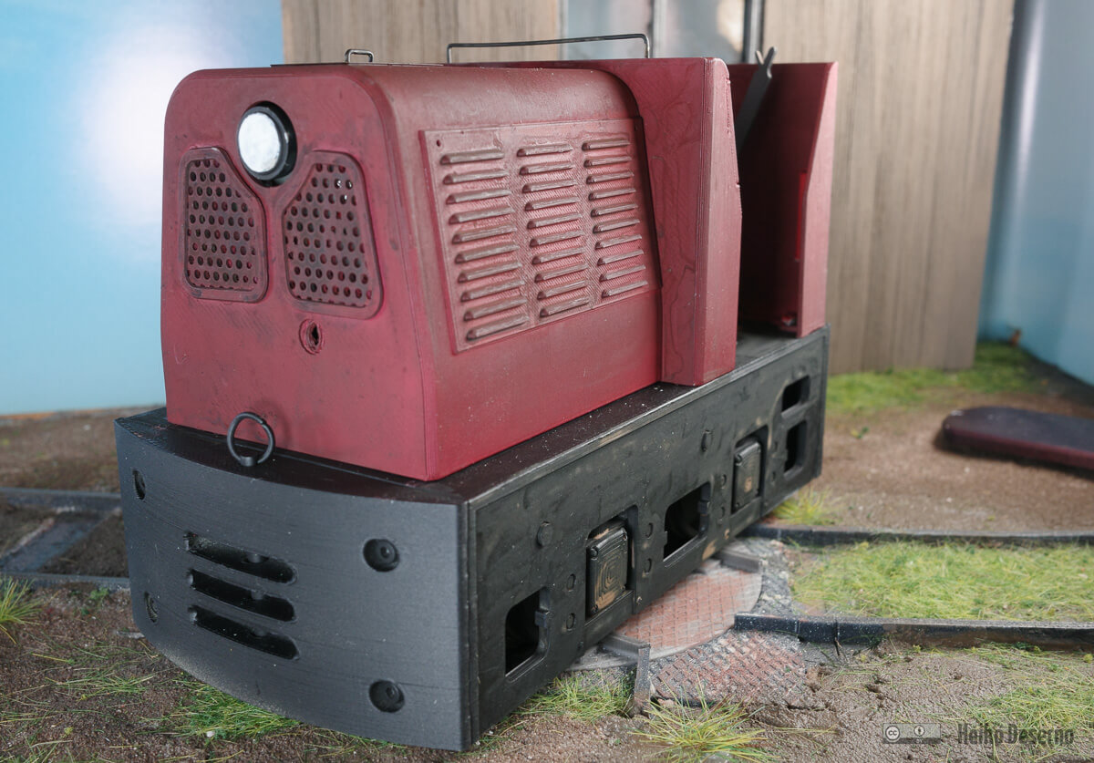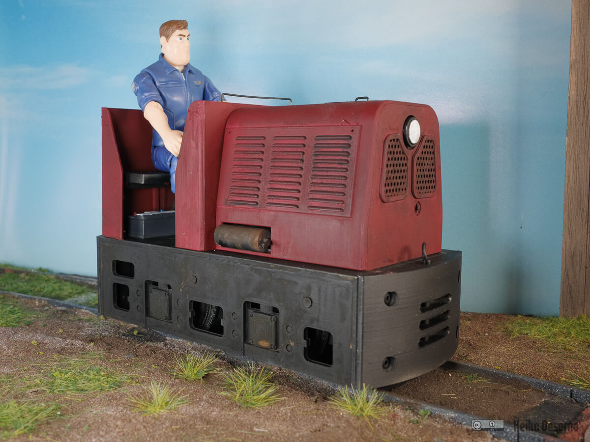 In diesem Modellbauwinter 2025/2026 entstand u.a. das Modell der tschechischen Feldbahn-Diesellok BN 15 R. Diese kleine Lok entspricht etwa der Ns1-Klasse. Die Abmessungen des Modells betragen 163 x 75 mm (Länge x Breite) und 105 mm in der Höhe. Das Rollmodell bringt 340 g auf die Waage, das motorisierte Modell inkl. Akkus 478 g.