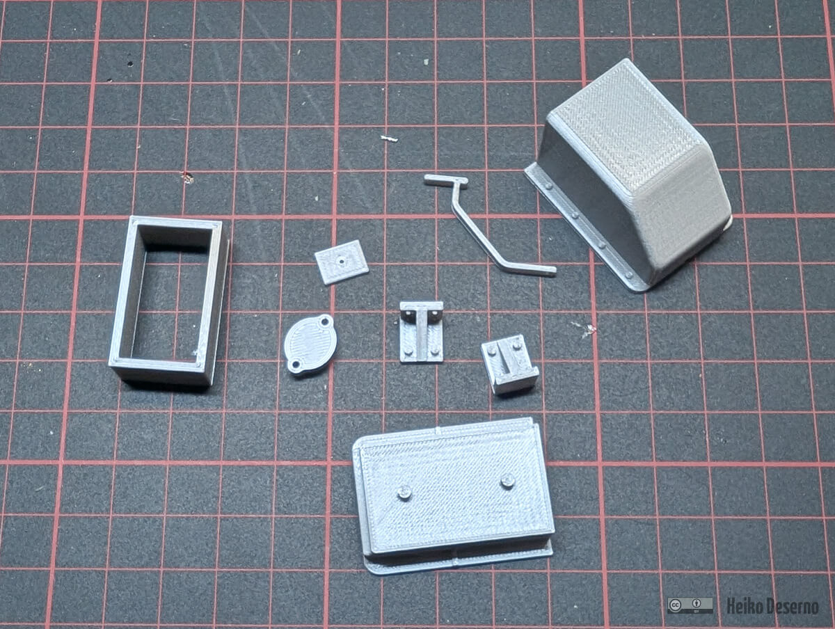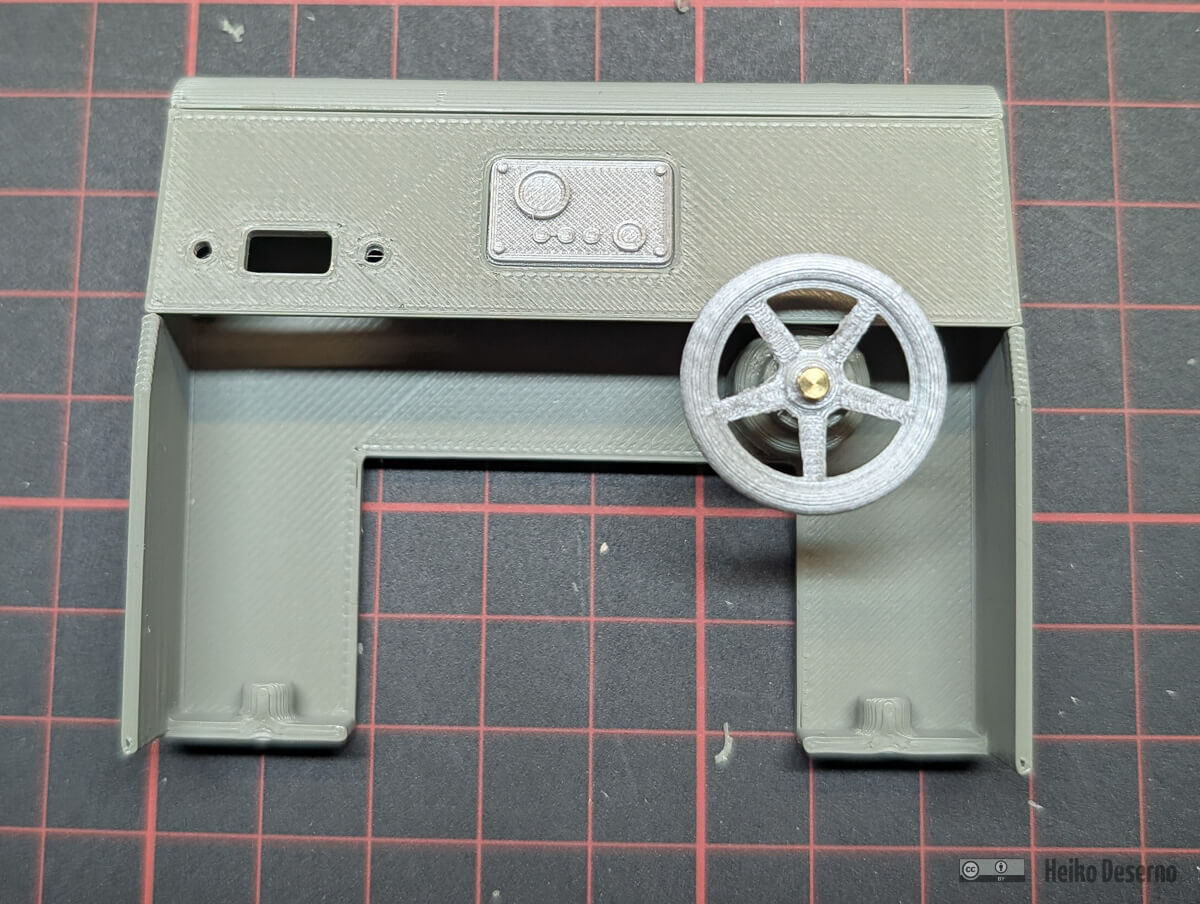 Getriebe-Rad und Bedienpanel lassen sich perfekt mit einer feineren Düse drucken. Im Download befindet sich eine Montagehilfe zur Anfertigung des Haltebügels, der aus 0,8 mm Messingdraht gebogen wird.