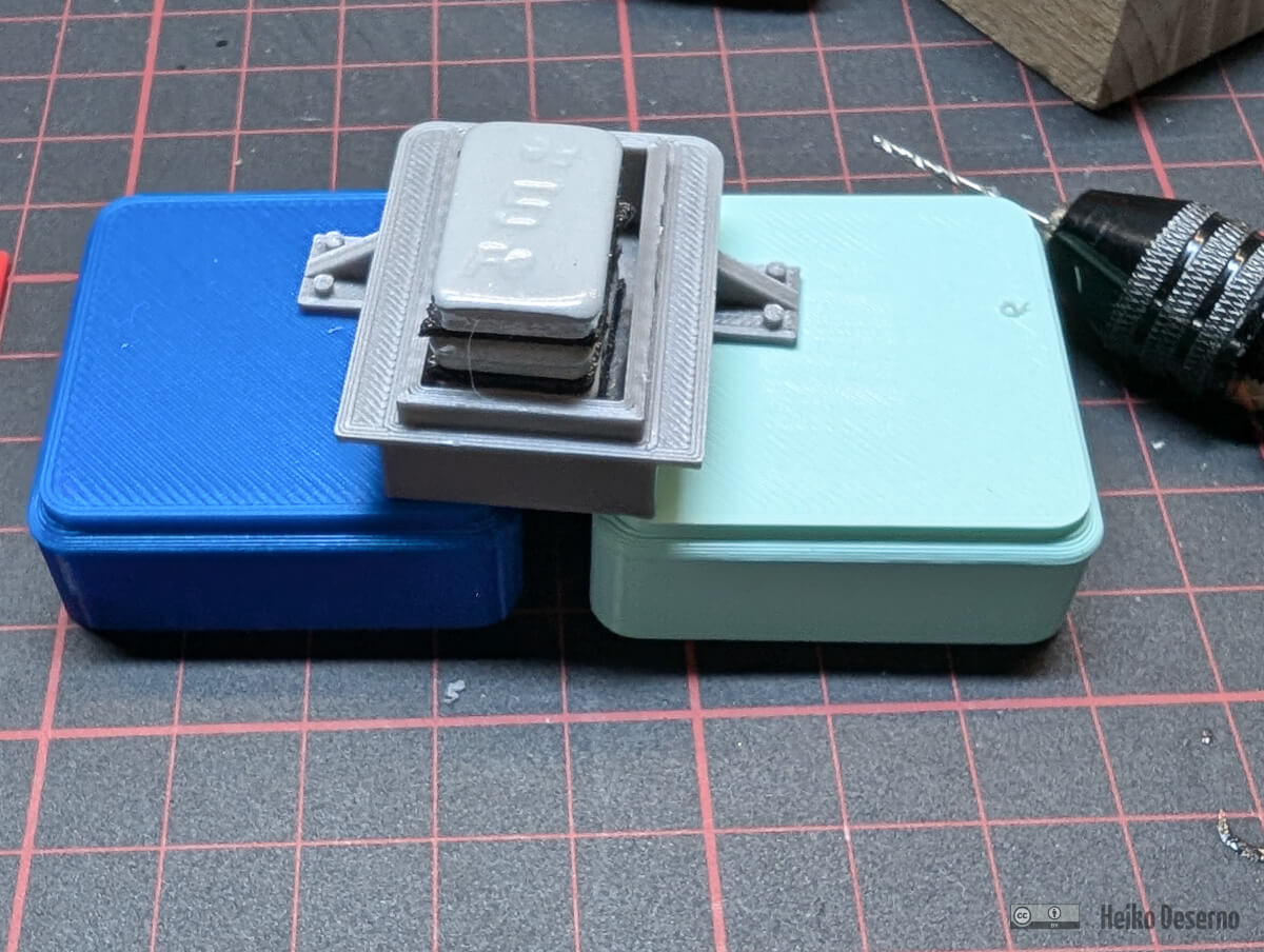 Für mein Rollmodell habe ich die Variante mit den Buchsen gewählt. Der Block besteht aus zwei Teilen und wird mit 6 Stück M2-Schrauben und M2-Gewindeeinsätzen verbunden. Zur Verbindung mit dem Lokrahmen werden noch einmal 6 Gewindeeinsätze eingeschmolzen. Der leichte Antriebsblock wiegt mit Radsätzen nur 55 Gramm und benötigt für ein stabiles Rollverhalten Ballastgewichte. 12 selbstklebende Gewichte à 10 Gramm summieren das Gesamtgewicht des Antriebsblocks auf 175 Gramm.