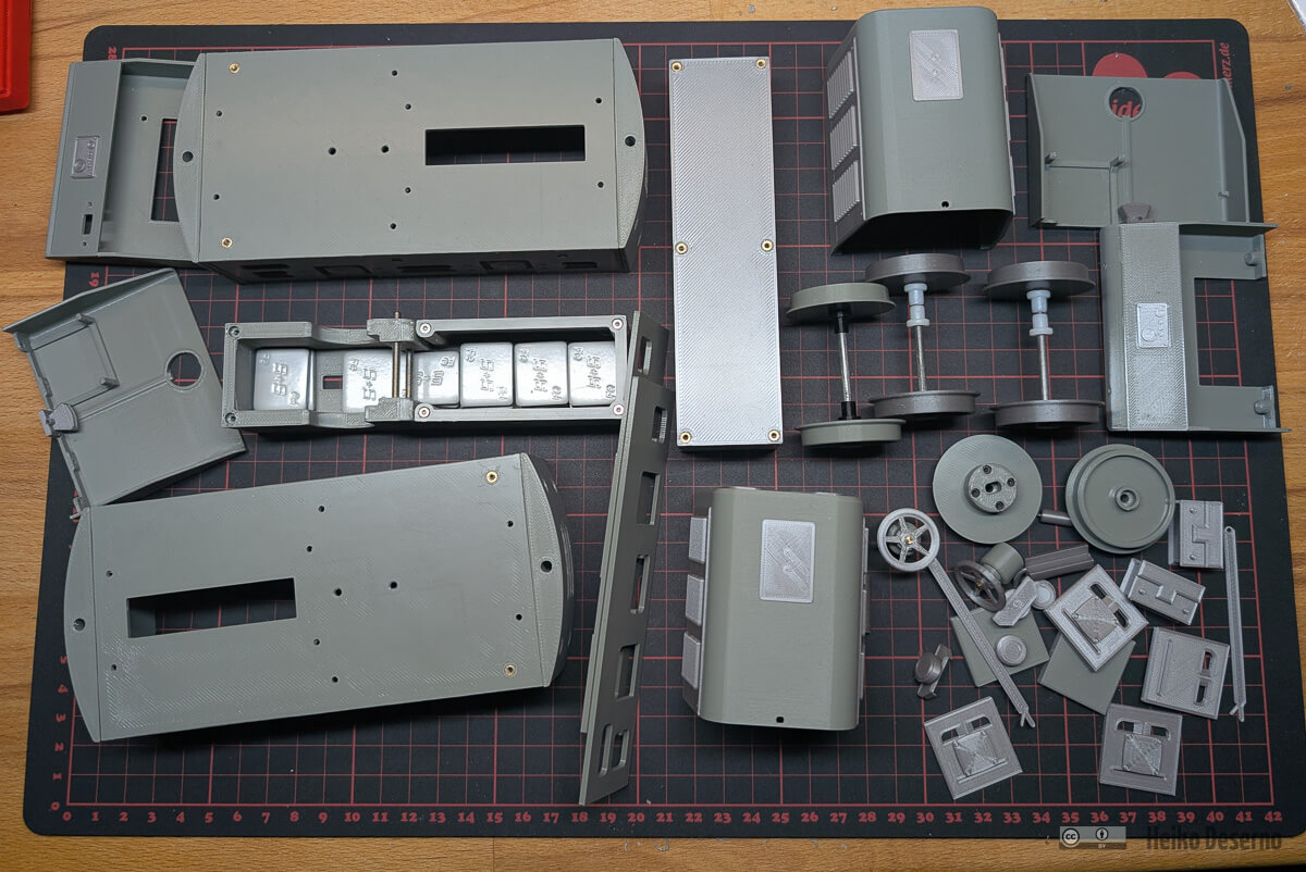 Für die motorisierte Variante der Lokomotive werden auf dem Lokrahmen noch einige Bauteile wie Batteriehalter oder Elektronik-Fach platziert. Diese Teile stelle ich später vor.