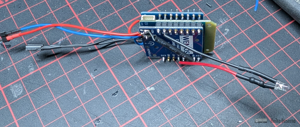 Für dieses Modell habe ich einen Microrail-Empfänger Typ B ausgewählt. Das B bedeutet dabei die etwas größere Ausfertigung mit 3 Platinen für 2-Zellen-Akkus. Der Aufbau des Empfängers ist in einem separaten Artikel beschrieben (siehe Artikel 160: „mr-receiver: Microrail-Empfänger auf Basis ESP8266“).