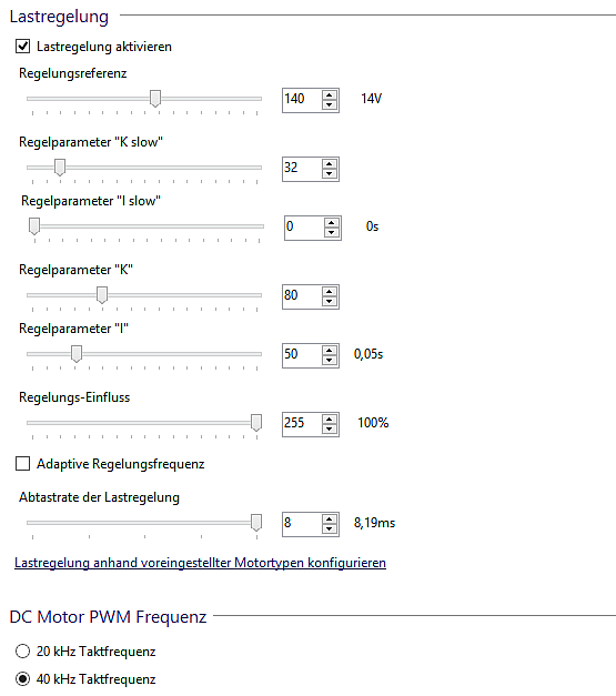Die Parameter für die Motorregelung habe ich in Form eines fertigen Profils für Faulhabermotoren ausgewählt. Mehr verstehe ich im Augenblick noch nicht.