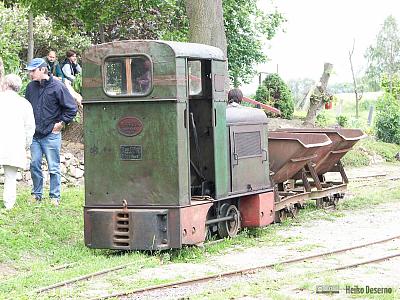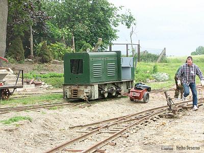 Die Ns2f kannte ich bisher immer nur mit geschlossenem Führerhaus. Hier eine offene Variante in grün. Die Ns2f ist fast baugleich mit der Ns2, sie ist der Nachfolger der Ns2 mit wiedereingeführtem Stangenantrieb (mit Blindwelle), der die Höchstgeschwindigkeit auf 12 Km/h erhöhte. Ab 1953 wurde diese Maschine in großen Stückzahlen im LKM Babelsberg gebaut.