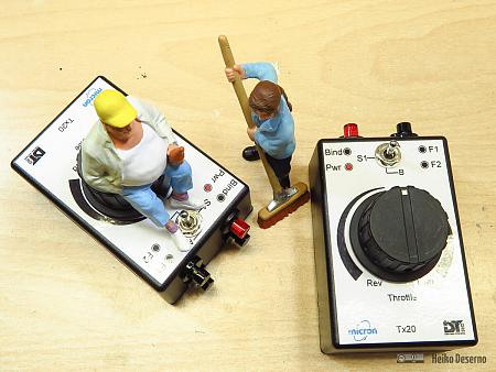 - Motorsteuerung mit Center Off. Der Fahrregler am Sender Tx20 hat eine spürbare Mittelstellung, bei der der Motor nicht läuft. Links ist rückwärts und rechts vorwärts.