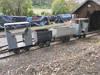 Für mich weitaus interessanter als der Stollen ist die Sammlung an Feld- und Grubenbahnfahrzeugen auf den Gleisanlagen vor dem Stolleneingang. Hier befand sich früher der Bahnhof Groß Döhren. Die Gleisanlagen wurden in 600 mm neu aufgebaut, da die ursprünglichen 780 mm Gleise des 1968 geschlossenen Schröderstollens längst abgebaut waren.
