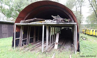 Am Schacht wurden Gleisanlagen und Unterstände aufgebaut. Hier lagern die Ausstellungsstücke aus längst vergangenen Zeiten.