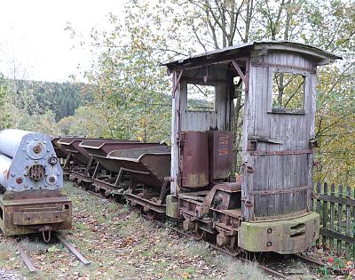 Interessante Exponate aus der Welt der Feld- und Grubenbahnen sind eine funktionsfähige Dampflok (Henschel Typ Fabian, BJ: 1914) und eine Akku-Lok B660. An einigen Tagen im Jahr fährt die Bahn Besucher zwischen Bahnhof und Schacht hin und her.