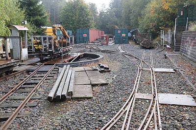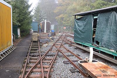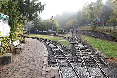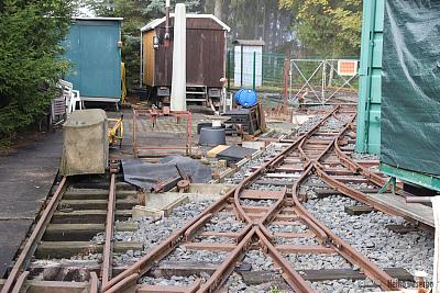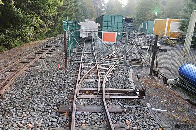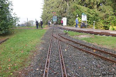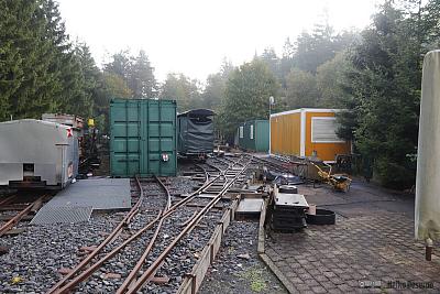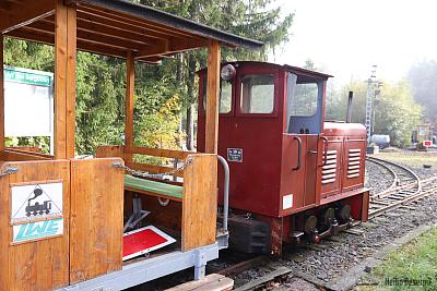 Im Rahmen des Vorabprogramms zum 29. Feldbahntreffen in Ilmenau Anfang Oktober 2019 habe ich die Lichtenhainer Waldeisenbahn besucht. Auf 640 m Höhe an der Bergstation der Oberweißbacher Bergbahn liegt die unscheinbare Anlage hinter einem Zaun. Die von weitem sichtbare E-Lok mit 600 mm Spurweite deutet auf Feldbahnfreuden hin.