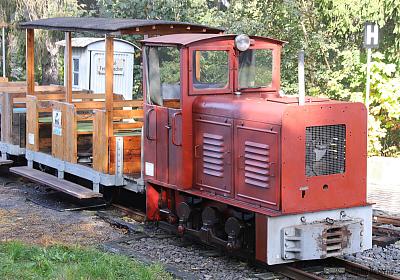 Das markante Wahrzeichen dieser Feldbahn ist die von weitem sichtbare E-Lok mit einer Spurweite von 600 mm. Die aus dem LEW stammende Werkbahn-Lokomotive war in den Jenaer Glaswerken eingesetzt.