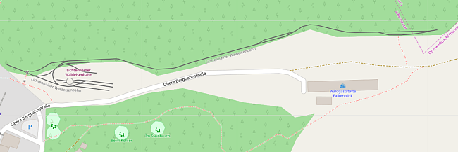 Die Karte (Quelle Openstreetmap) zeigt den vereinfachten Streckenplan. Hinter dem eigentlichen Gelände gibt es noch ein längeres Gleis in den Wald.