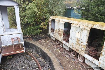 Auch in Lichtenhain gibt es Akkuloks des BBA. Im Container stand eine fahrbereite B360 und auf dem Gelände mehrere verrottete B660.