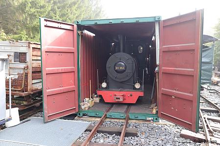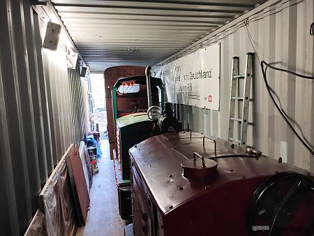 Im zweiten Container steht ein kompletter Zug mit zwei Fahrzeugen Ns2f und einigen Wagen. Dieser Zug ist im Video zu sehen. Ein Container enthält eine Dampflok, wobei es im Inneren sehr eng zugeht. Diese Aufbewahrung ist nur für schlankes Lokpersonal geeignet.
