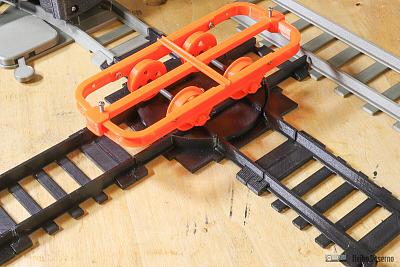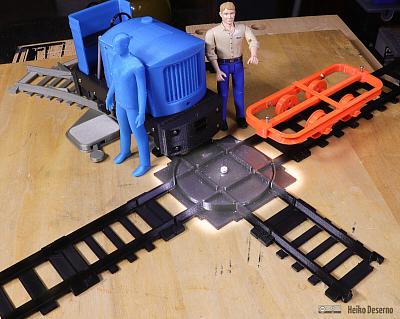 Die Drehscheibe hat an allen 4 Seiten Gleisstücken OS-Railway-Verbinder, die die Kopplung mit anderen Gleiselementen gestatten. Diese Randstücken habe ich den Fusion 360-Zeichnungen im Depronized-Forum entnommen und in die Konstruktion eingefügt.
